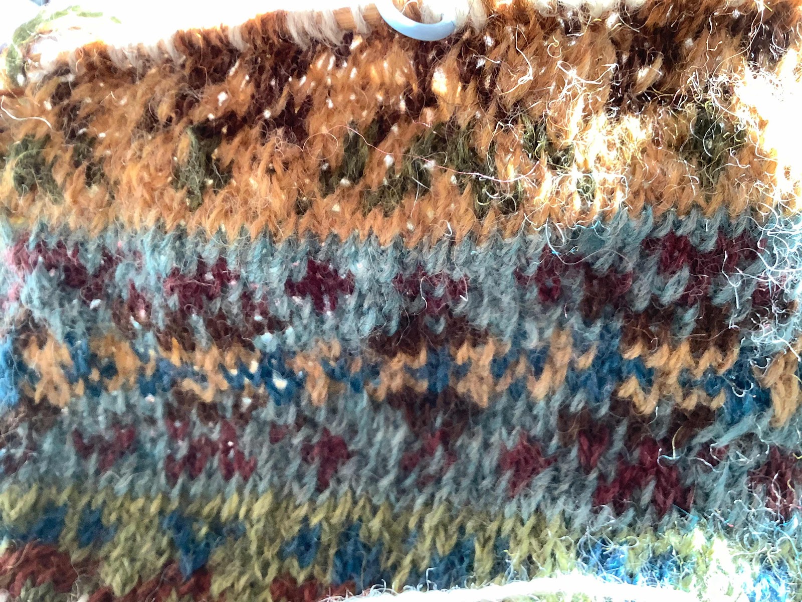 My knitting progress has been slow today. The Fair Isle takes concentration, and I was distracted several times today, so had a row to undo.