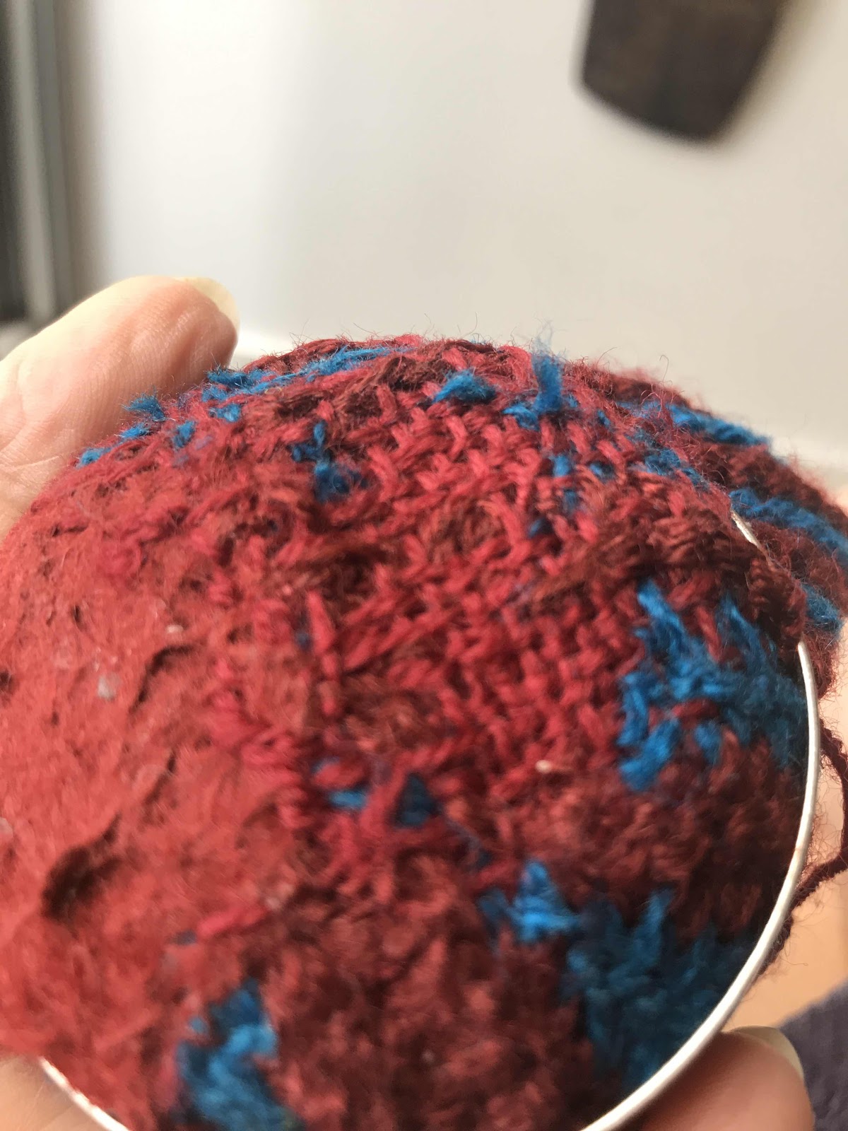 While she surveyed the scene, I got out my darning mushroom and some 2 ply wool, and mended the Uzbekistan slipper socks.