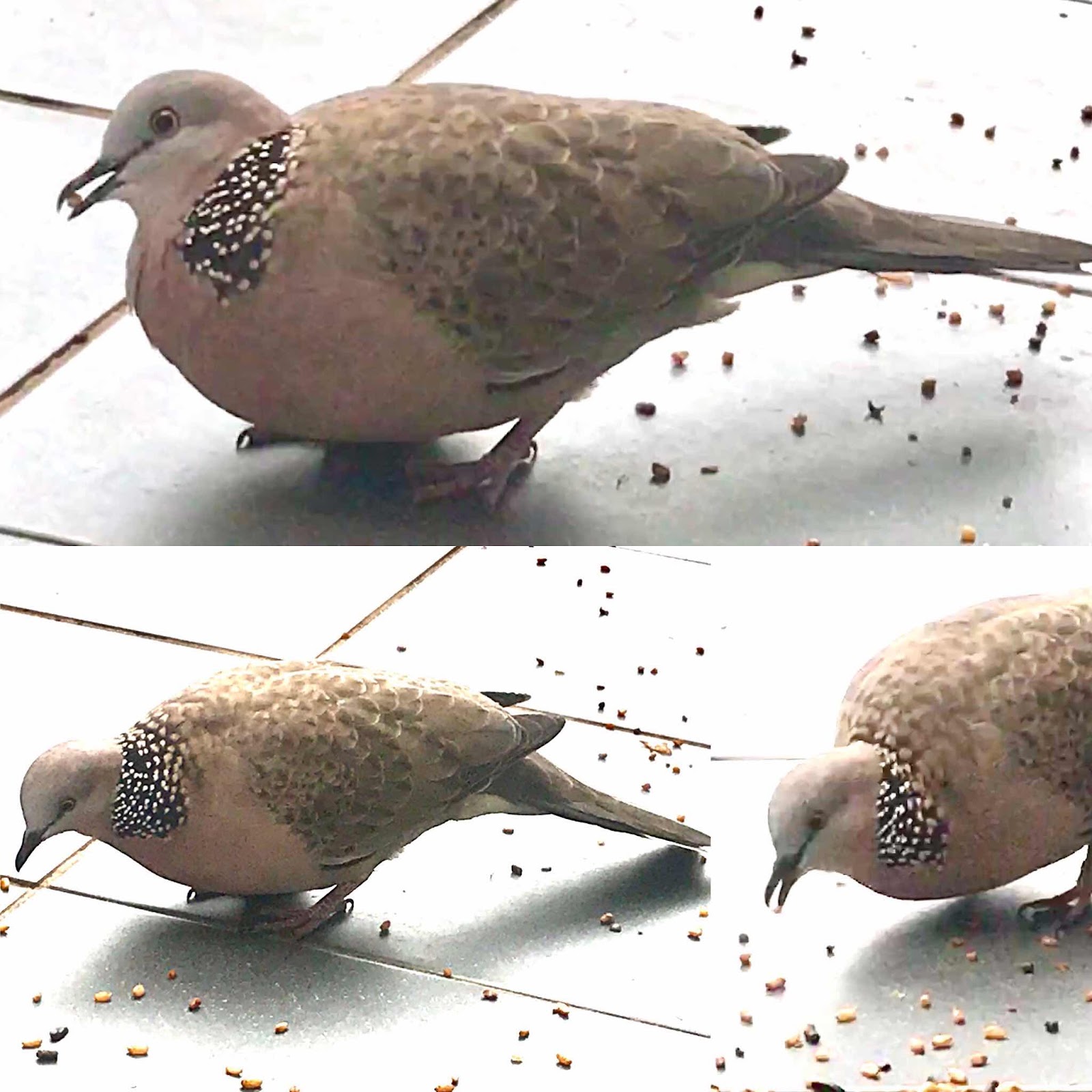 I haven't seen Myrtle for a couple of days. Turtle turned up this morning waiting for seed. He waited while I opened the door and distributed the seed and he began eating while I was still on the balcony. He didn't come closer than about a metre, but had no problem with my taking photos.
