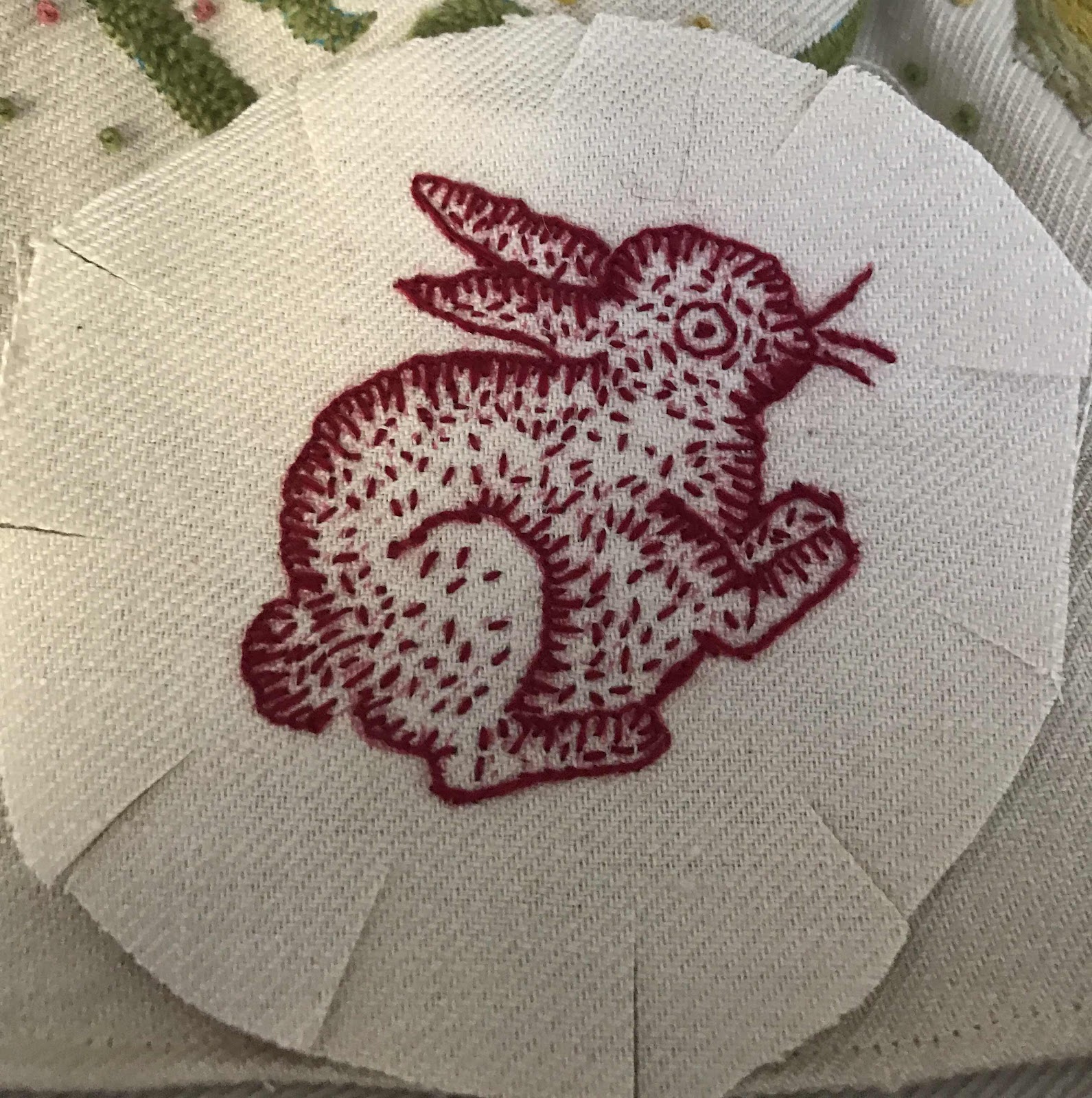 It was an easy matter to cut out the rabbit, pin and stitch it.