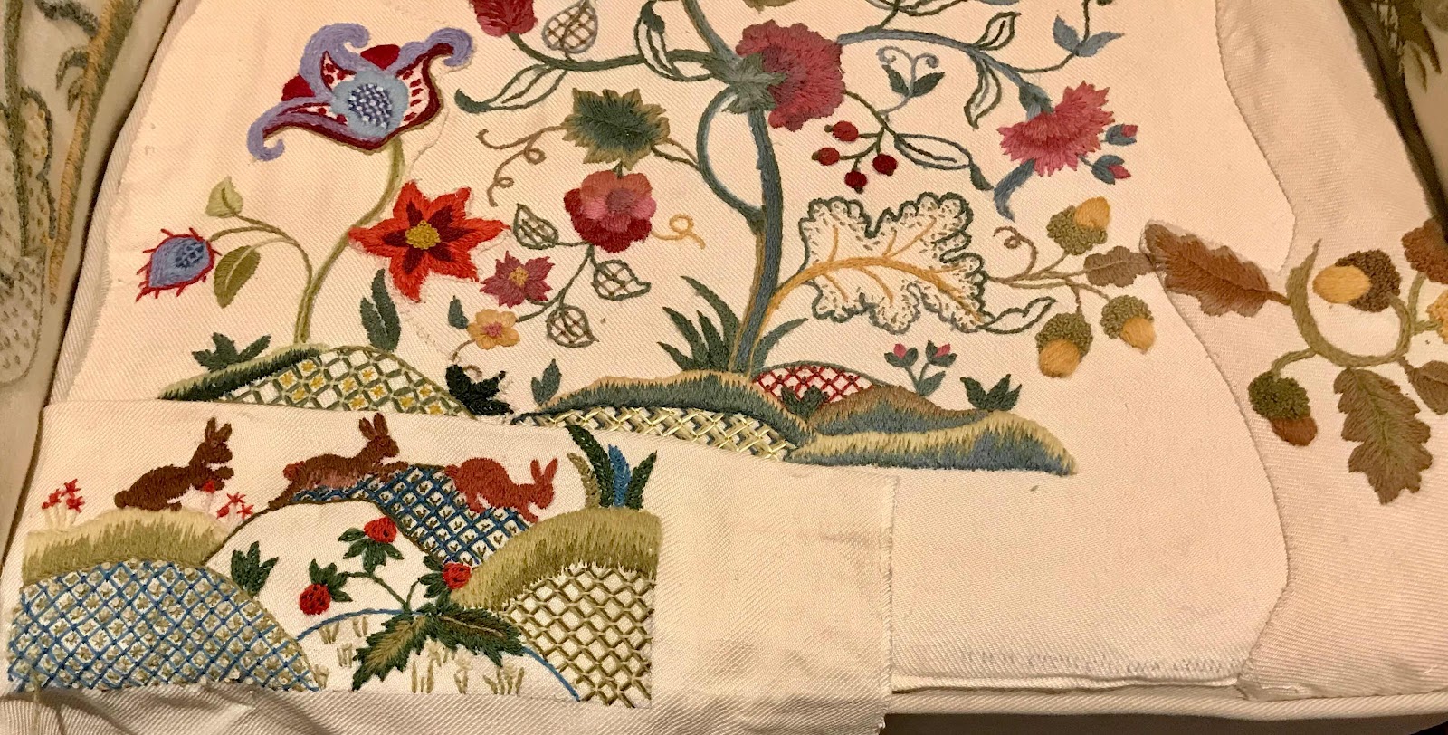 This is, of course, the first of four of these panels destined to go along the front of my Crewel chair.
