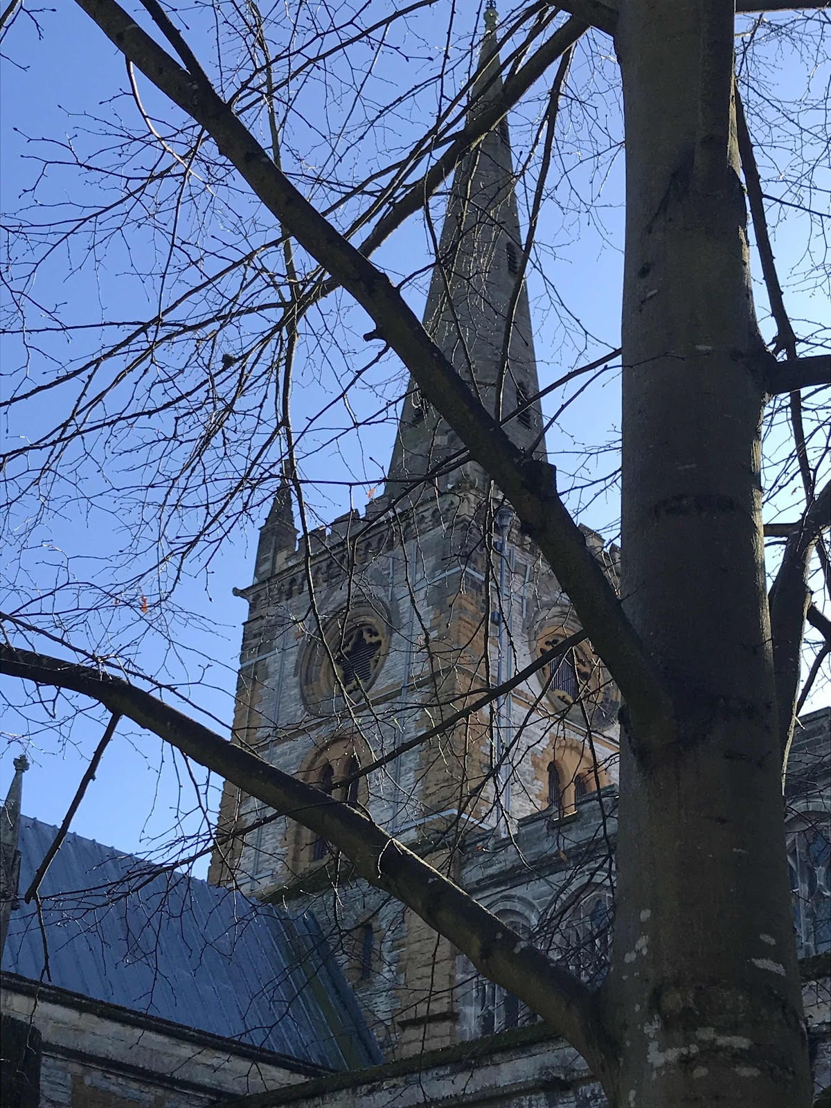 We came back to the hotel along the side of the Royal Shakespeare Theatre to the hotel. It was windy, chilly and a little showery.
