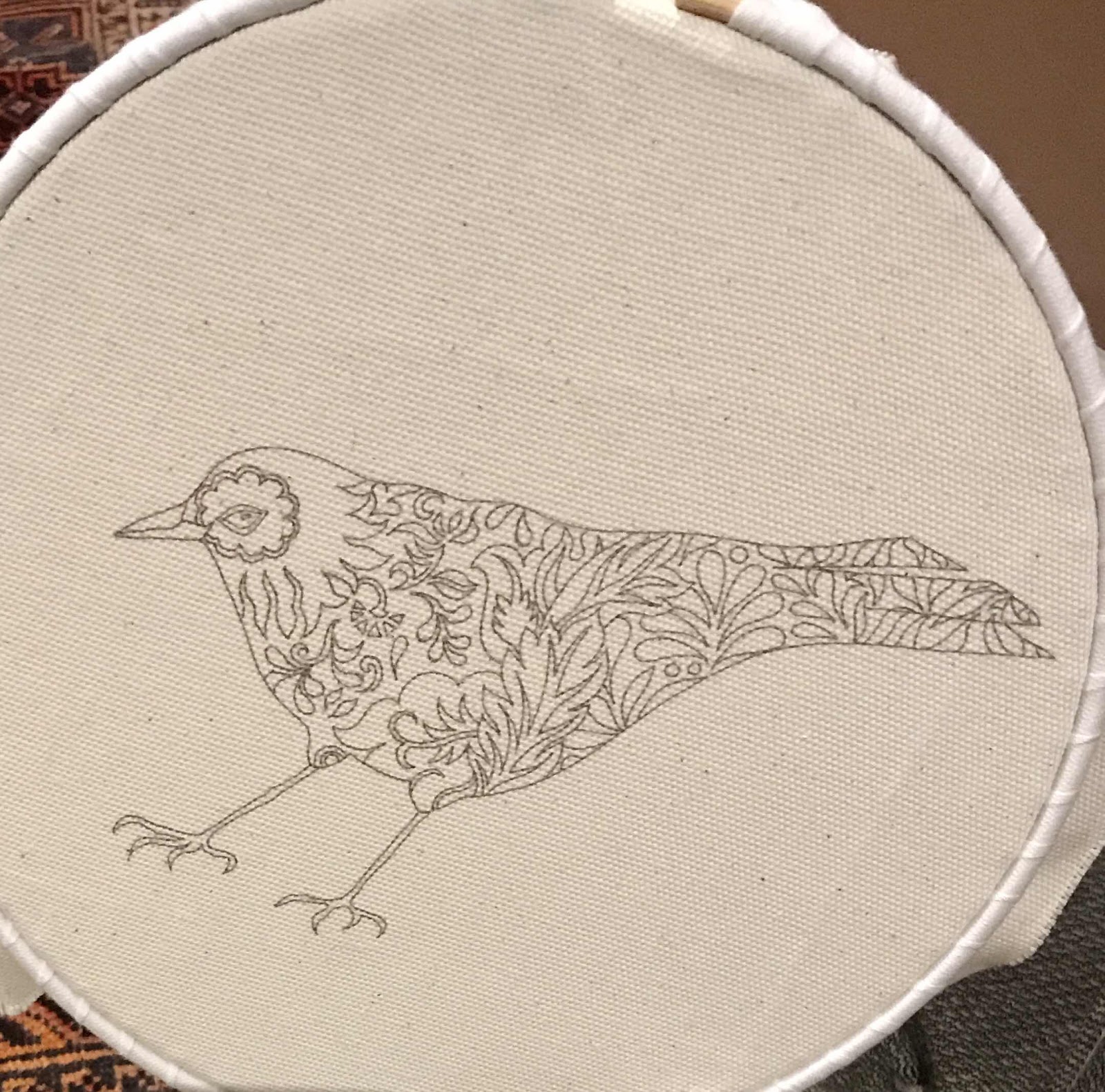 This afternoon another treat arrived in response to yesterday's blog post. My friend Christine in Watford had attended a workshop with Nicola Jarvis on one of the birds I had mounted in a hoop yesterday and was kind enough to send me a photo of her finished version. How inspiring is that!