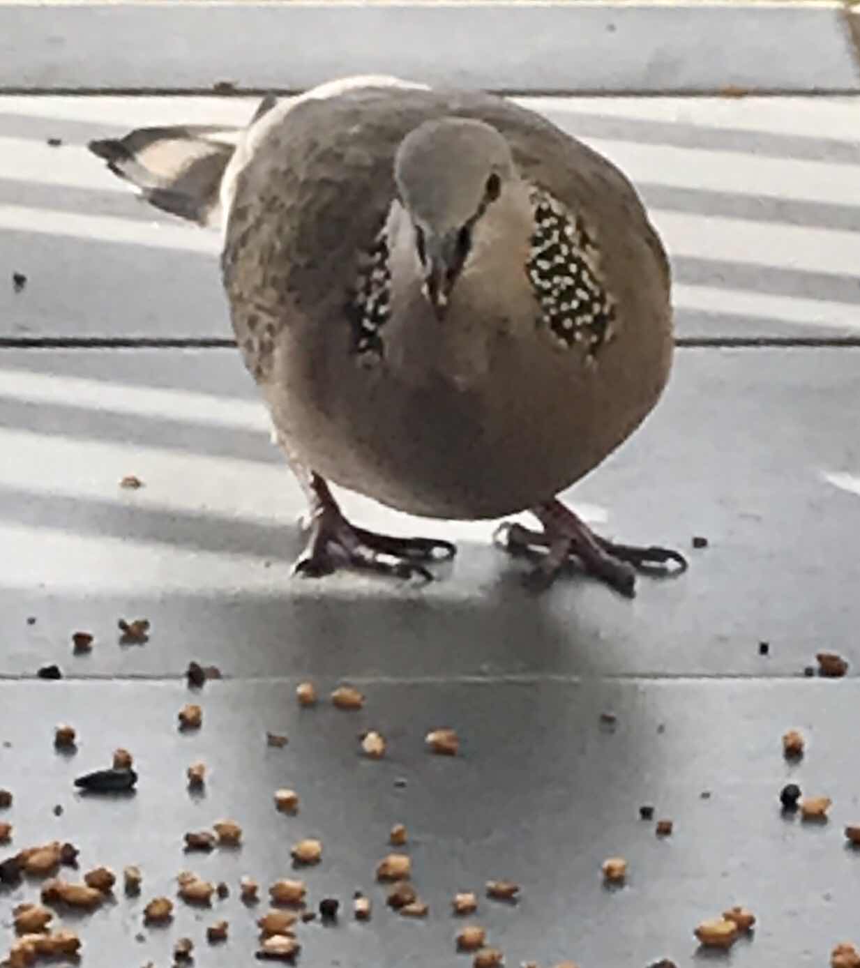 10 minutes later Turtle was back to finish his brunch. I'm not sure what the story is with the Miner. It is not interested in the seed, but definitely has a negative impact on doves.