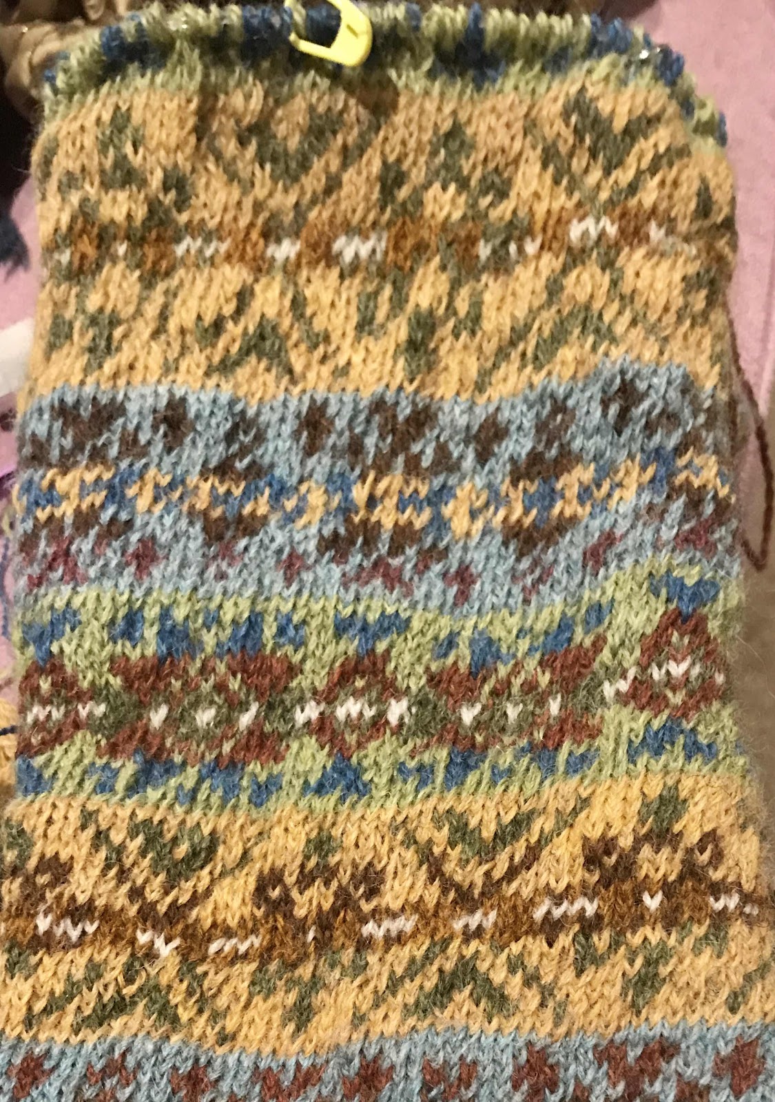 My knitting progress didn't quite match my target of two bands but I did get well into the second band. I also varied the pattern slightly on the quince band. Absolute repetition is, I'm sure, not good for my brain.