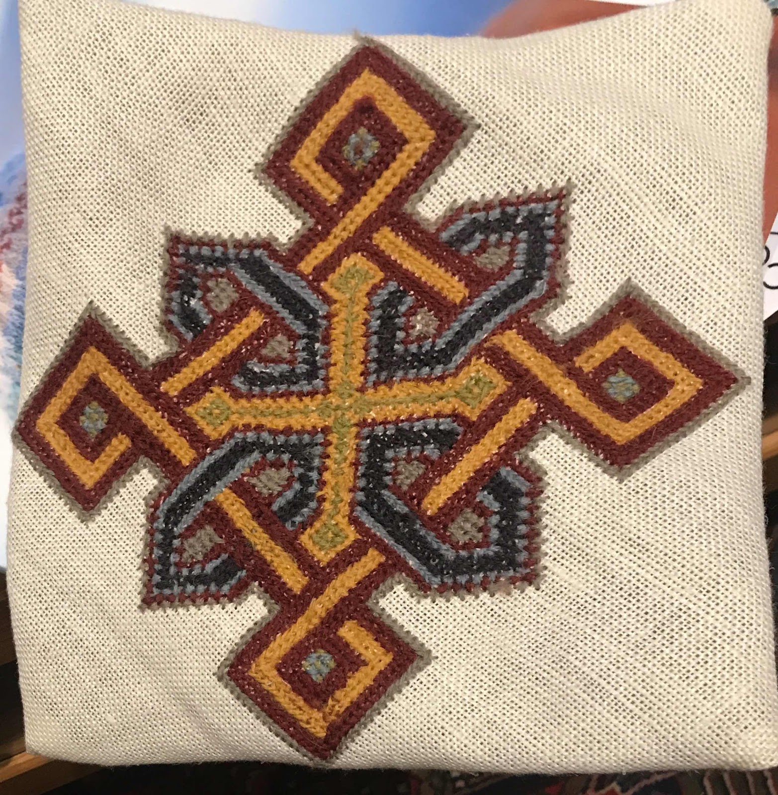 I'm plugging away at my knitting and setting up the linen for the Serenity project, which is what I might try next. I have never used Buratto linen. It is extraordinarily soft and pliable. And it is also 8 thread count per inch!