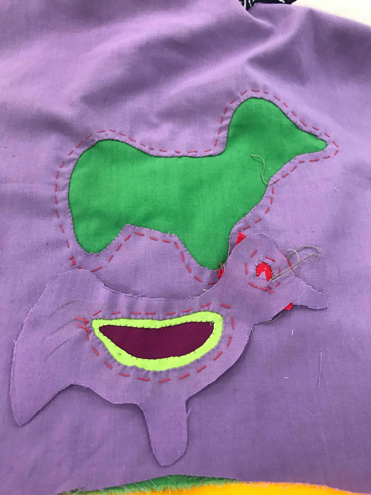 It relatively slow work, layering and cutting out fabric, stitching down internal edges.