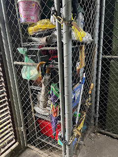 The other drama reached me around 3pm yesterday via a phone call from our Strata Pod Rep. She had just interrupted our carpark burglar of a month ago breaking into my carpark locker again. She came through the door from our foyer into the carpark to see the man, recognisable from the original break-in CCTV footage, at my locker, cutting the padlock with bolt cutters. She screamed, trying to attract attention. He waved his hands, as if to say 'I mean no harm' and ran through the carpark and away. There was no one around to hear her. He had cut through the new padlock on my storage cage, but got no further. Although he had stolen a carpark entry fob in January, he gained entry yesterday by following a car through the door. Nevertheless, our fobs are being reprogrammed on Thursday. It is a bit creepy that he came back to 2 lockers, one of which was mine, I presume for the boxes I carelessly marked 'Personal Treasures' and 'Treasures from Asia'.